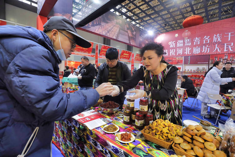 当天,走进廊坊国际会展中心,12大特色展区错落有致、各具特色,环球优品区、非遗文创区、健康智享区、田园鲜选区、舌尖年味区等展区内商品琳琅满目,让人目不暇接,实现了从国际优品到民生好物的全领域覆盖。