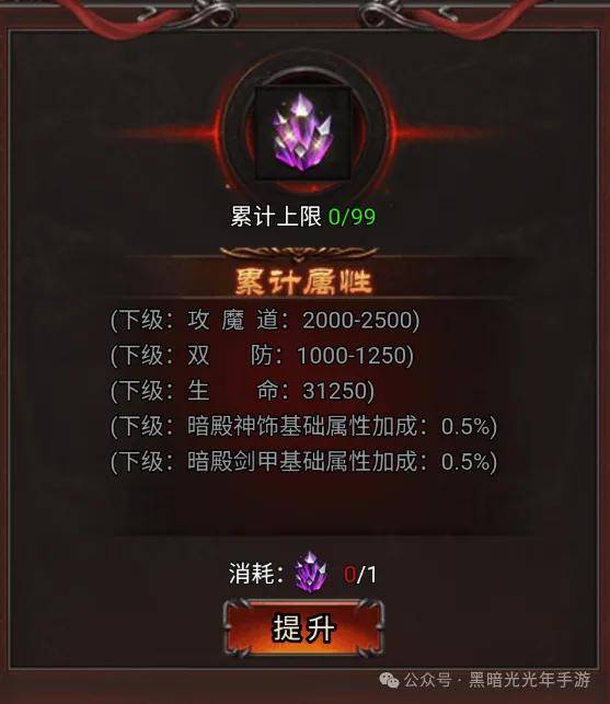 4、每层暗殿均有不同的属性值要求
