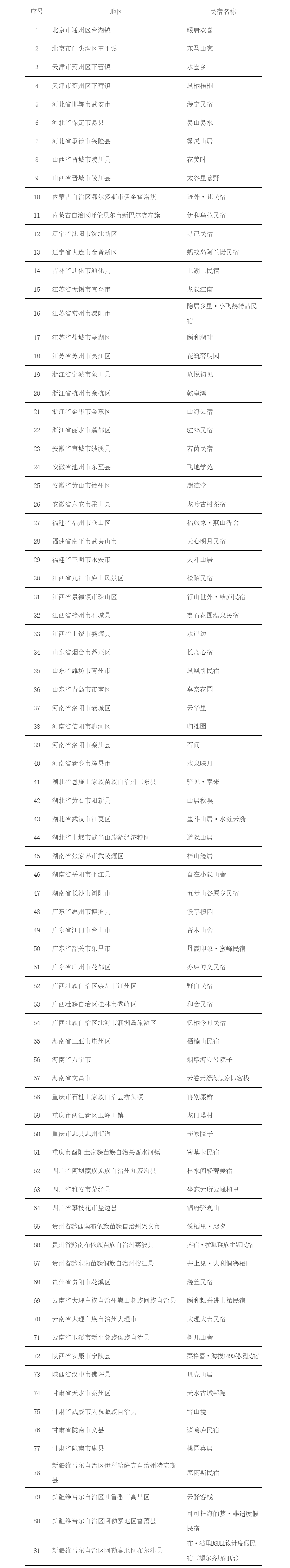 甲级民宿(81家)