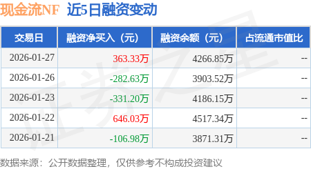 证券之星消息,1月27日,现金流NF(159232)融资买入725.58万元,融资偿还362.26万元,融资净买入363.33万元,融资余额4266.85万元。