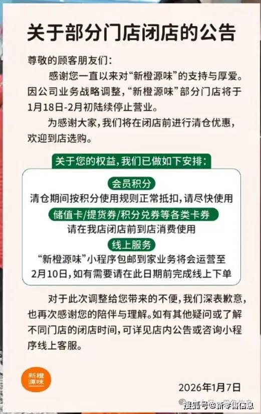 2026 年 1 月 7 日,地方知名超市新橙源味官方公众号发布闭店公告,称因业务战略调整,部分门店将于 1 月 18 日至 2 月初陆续停止营业。消息一出,常州多家门店当晚即现抢购热潮,货架被迅速搬空。