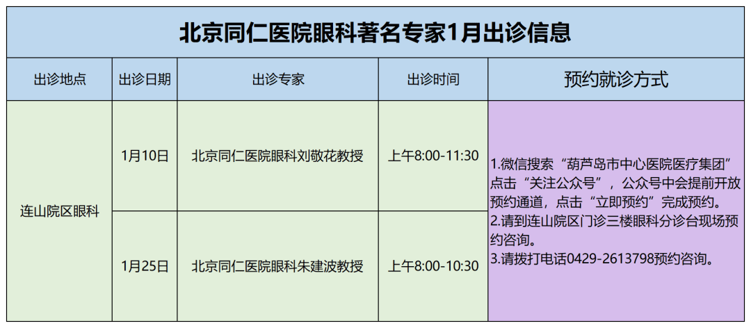 北京同仁医院、北医三院眼科著名专家1月份出诊信息