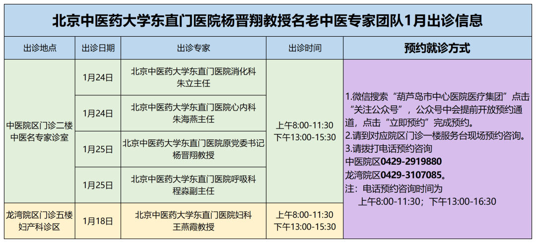 北京中医药大学东直门医院杨晋翔教授名老中医专家团队1月份出诊信息