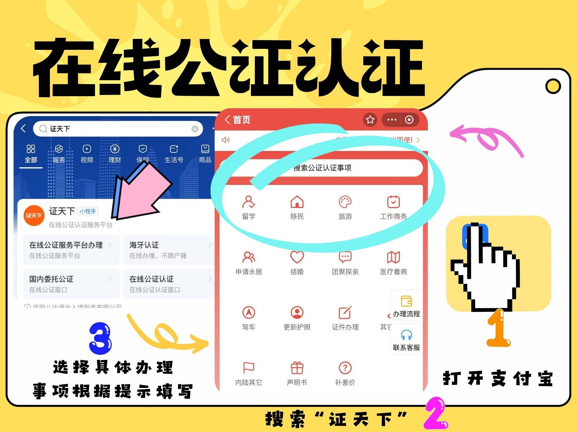 好消息是,现在完全可以通过线上渠道办理,费用透明、流程简化,关键是一次性搞定所有环节,避免反复跑腿。比如在微信或支付宝上,搜索“证天下”小程序,就能在线提交材料、完成缴费、查询进度,公证书直接邮寄到家。小程序是与正规公证处合作,公证费用标准与线下一致,但省去了交通费、误工费;其次,材料审核、翻译、认证等环节由平台统一协调,避免因材料不全反复跑腿产生的额外成本;全程线上操作,不用排队,真正实现“零跑腿”。