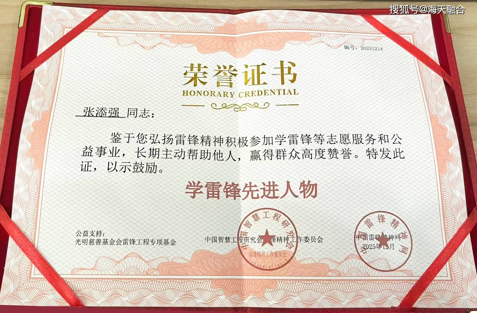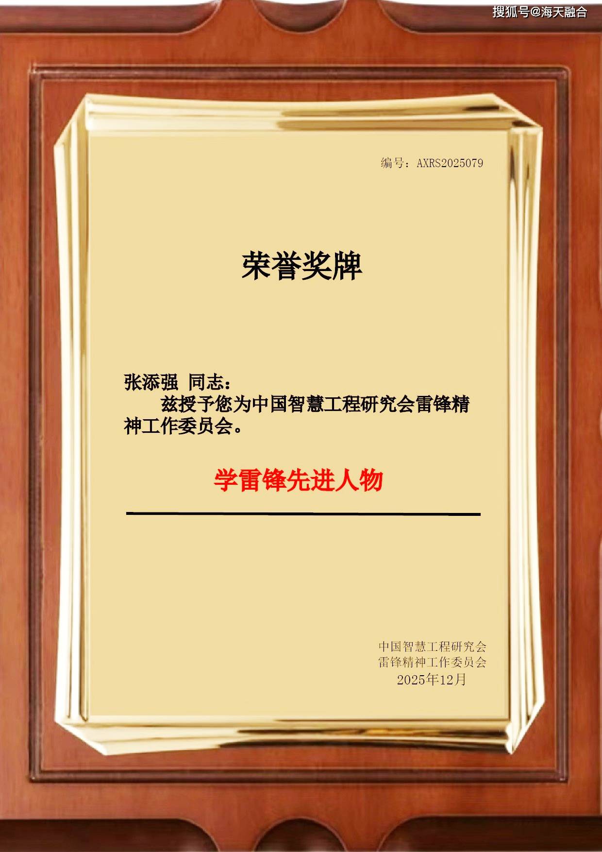 (教育部主管)中国智慧工程研究会-雷锋精神工作委员会学雷锋先进人物张添强
