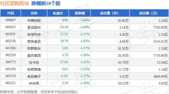 从资金流向上来看,当日社区团购板块主力资金净流入1.75亿元,游资资金净流出2.1亿元,散户资金净流入3535.94万元。社区团购板块个股资金流向见下表: