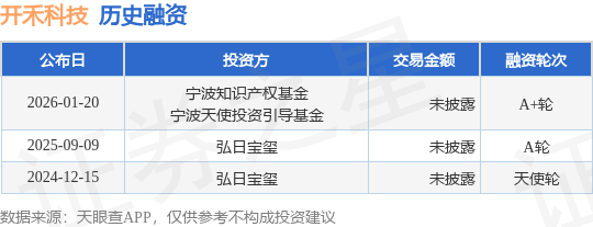 证券之星消息,根据天眼查APP于1月20日公布的信息整理,开禾科技(宁波)有限公司A+轮融资,融资额未披露,参与投资的机构包括宁波知识产权基金,宁波天使投资引导基金。