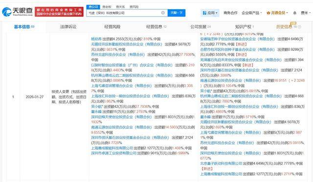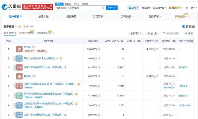 弋途(深圳)科技有限公司成立于2023年10月,法定代表人为吴小航,经营范围包括汽车零部件及配件制造、智能车载设备制造、智能车载设备销售等。股东信息显示,该公司现由吴小航、苏州戈途科技合伙企业(有限合伙)及上述新增股东等共同持股。公开资料显示,该公司致力于汽车行业基础中间件、服务中间件、AI中间件的研发和商业化落地。