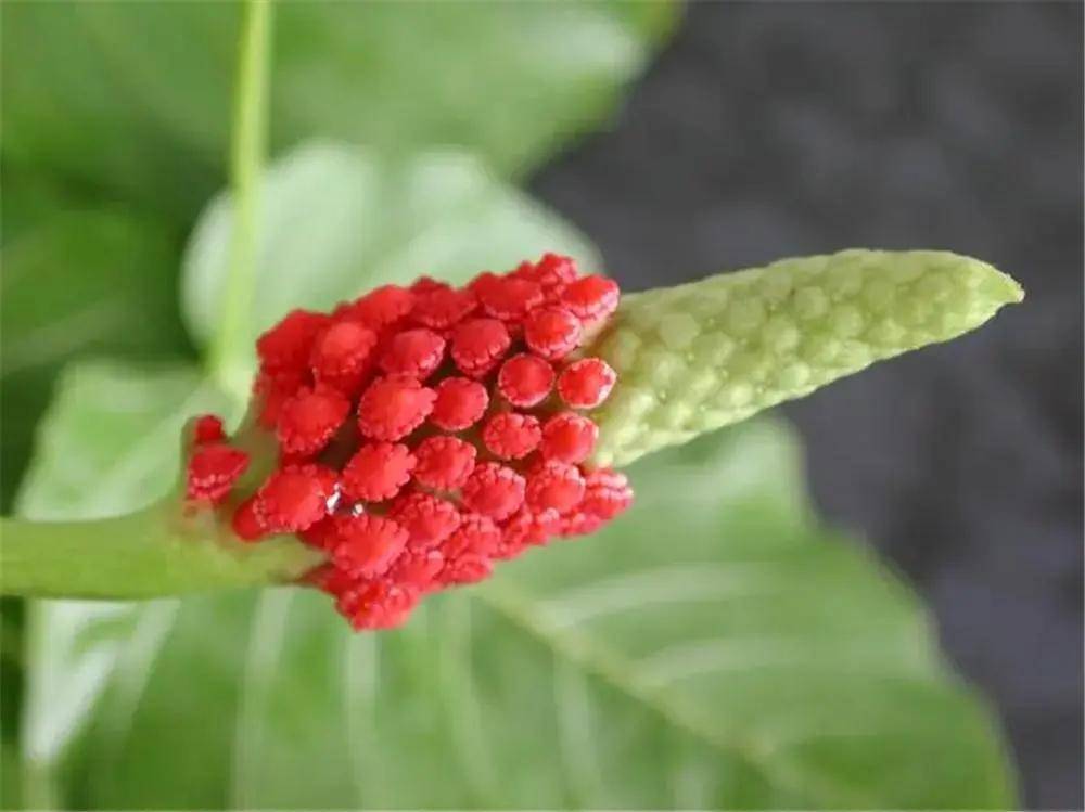 雄花呈鲜艳的红色,穗状花序为圆锥形,每朵花的直径约2厘米,小巧玲珑,簇拥在一起十分显眼。