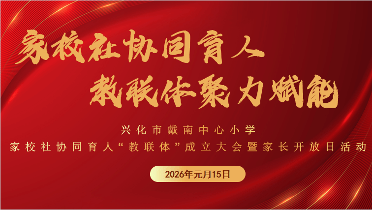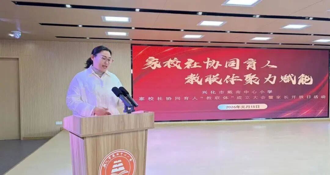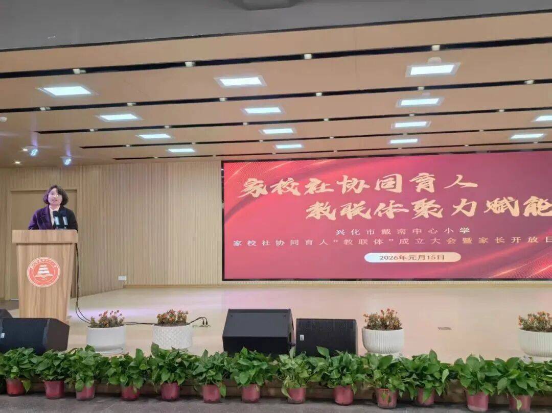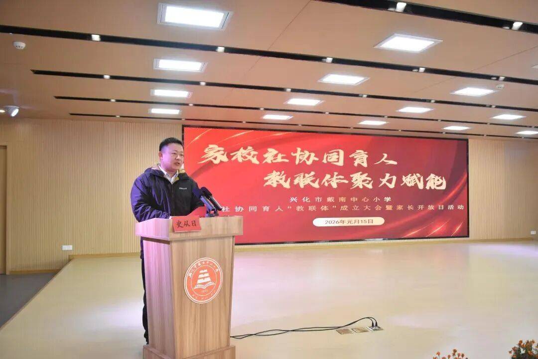 2026年1月15日,兴化市戴南中心小学家校社协同育人“教联体”成立大会暨家长开放日活动圆满举行。家长代表、“教联体”合作共建单位代表走进校园,在课堂观摩、大课间体验中近距离感受孩子的校园生活,又在隆重的“教联体”成立仪式里,共同见证这所百年老校携手本土单位机构、企业、社区,开启家校社协同育人的全新征程。
