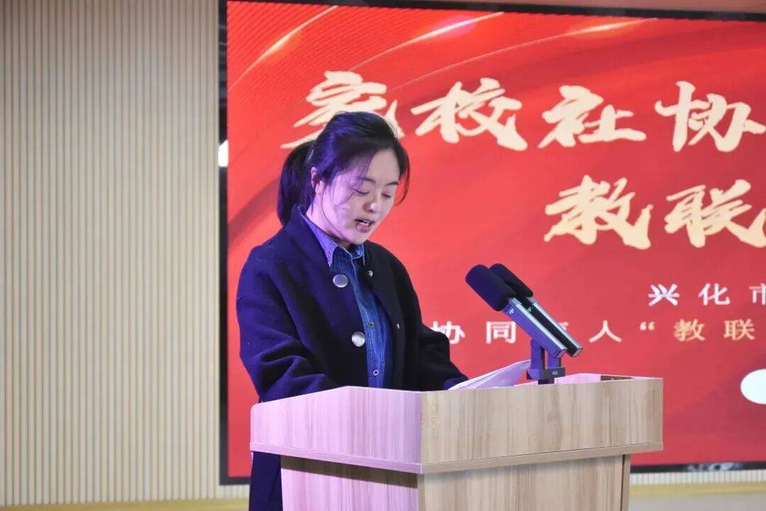 下午2:40,家校社协同育人“教联体”成立仪式在学校报告厅正式启动,本次活动由副少先队辅导员朱晓静主持。