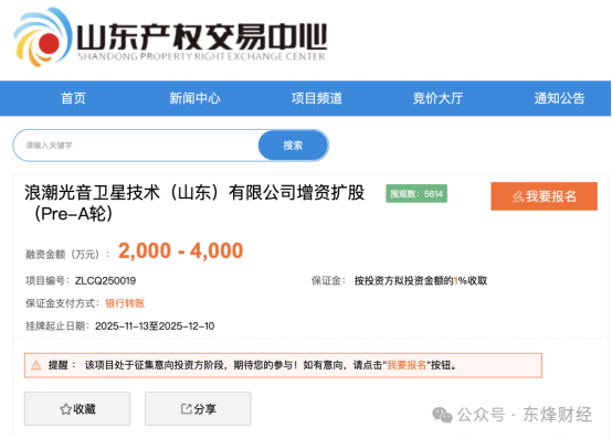 近日,浪潮智慧产业集团有限公司(简称“浪潮智慧产业”)在山东产权交易中心发布公告,启动浪潮光音卫星技术(山东)有限公司(简称“浪潮卫星”)增资扩股(Pre-A轮)工作。