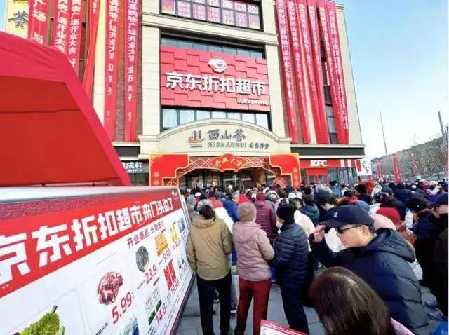 2025年8月16日,京东折扣超市全国首店在河北涿州君悦广场正式开业,标志着京东正式入局大型折扣超市赛道。开业当日门店即迎来消费热潮,客流量逼近6万人次,自开业便因人流过大持续采取限流措施。