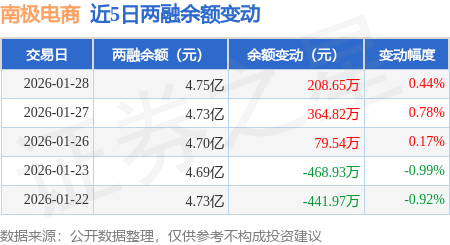 证券之星消息,1月28日,南极电商(002127)融资买入1231.16万元,融资偿还1019.16万元,融资净买入212.0万元,融资余额4.74亿元,近3个交易日已连续净买入累计626.34万元,近20个交易日中有11个交易日出现融资净买入。