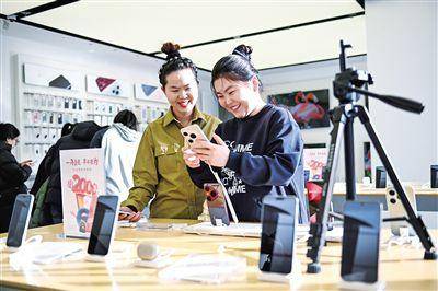 1月28日,呼和浩特市民在七彩城购物中心选购手机。春节将至,呼和浩特家电市场迎来消费“开门红”。自治区2026年家电以旧换新、数码及智能产品购新补贴政策实施以来,家电及数码市场迎来全方位热销态势。记者 王磊摄