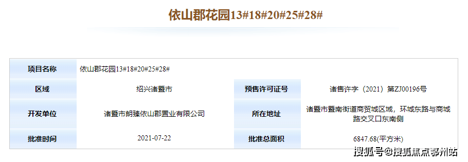 朗臻依山郡(备案名:依山郡花园)的预售许可公告。