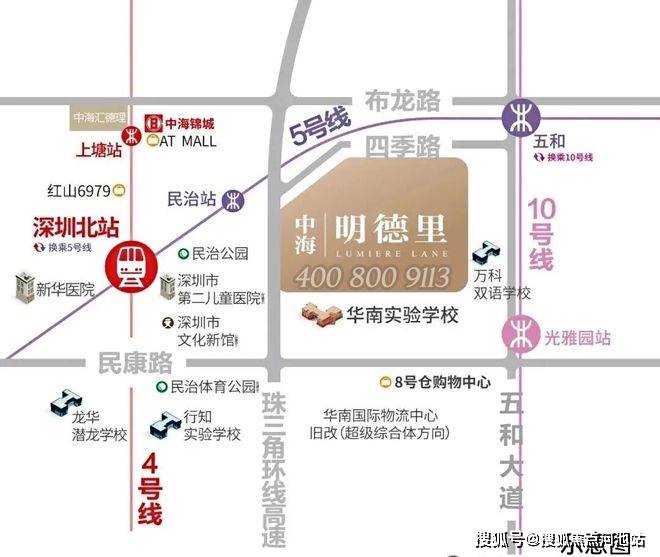 2)北站国际商务区,深圳六大总部基地之一,高投入打造国际化城市会客厅;项目距离深圳北站直线约2公里,所在民治街道是龙华目前发展的核心区域;明德里,于双区之中,在重点产业走廊之上,区域优势得天独