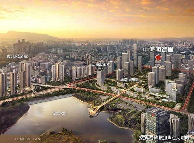 民治,新晋深圳都市核心区龙华“一圈一区三廊”重点发展格局:数字龙华,中轴新城腾飞;北站国际商务区,高投入打造国际化城市客厅;明德里,于双区之中,在重点产业走廊之上,区域优势得天独厚