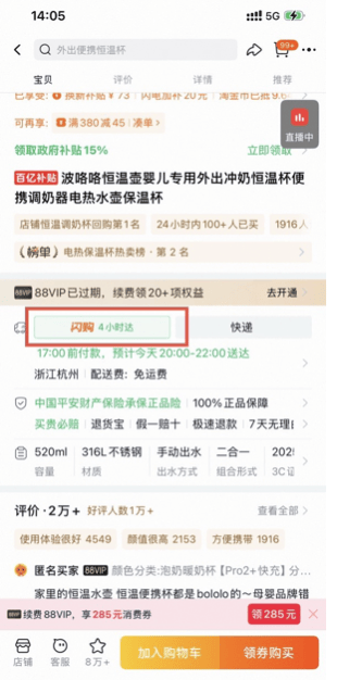天猫50大品牌接入淘宝闪购,提供4小时送货上门服务