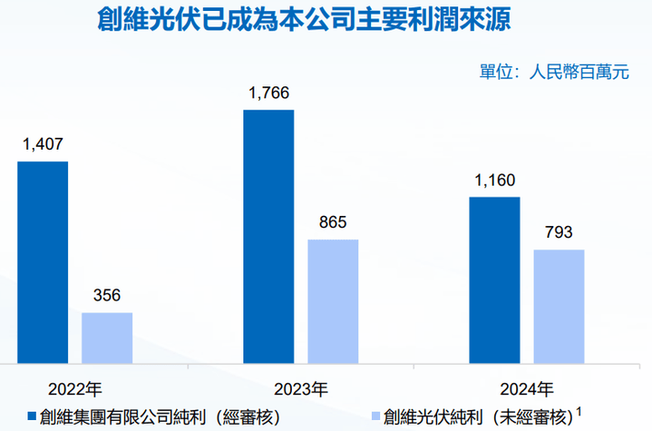 除此以外,创维光伏也成为了创维集团的主要利润来源,按2024年的业绩数据,其利润规模占集团总利润的七成左右。