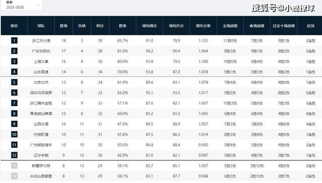 原创 CBA积分榜最新排名出炉!广厦成功复仇杀回第一,山东升至第四,辽宁新疆全部翻车