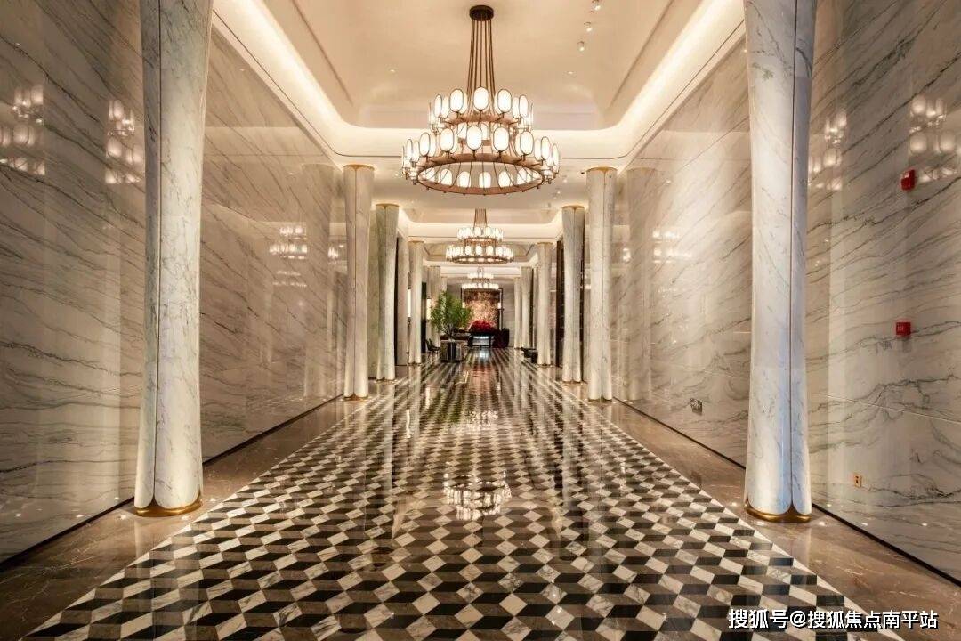 下沉式中庭水景园林、引光影到空间、外挂罗马洞石、满目极尽奢华;