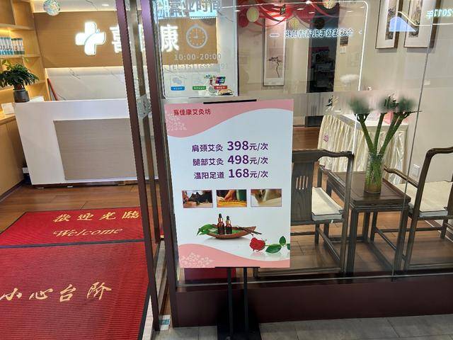 “价格有点太贵了。”一位刚刚在街区逛了一圈的老人表示,这里的养生馆提供的足道服务要168元,而她平时做一次足疗只需要花五六十元,养生馆还有动辄三四百元的艾灸,更消费不起了。