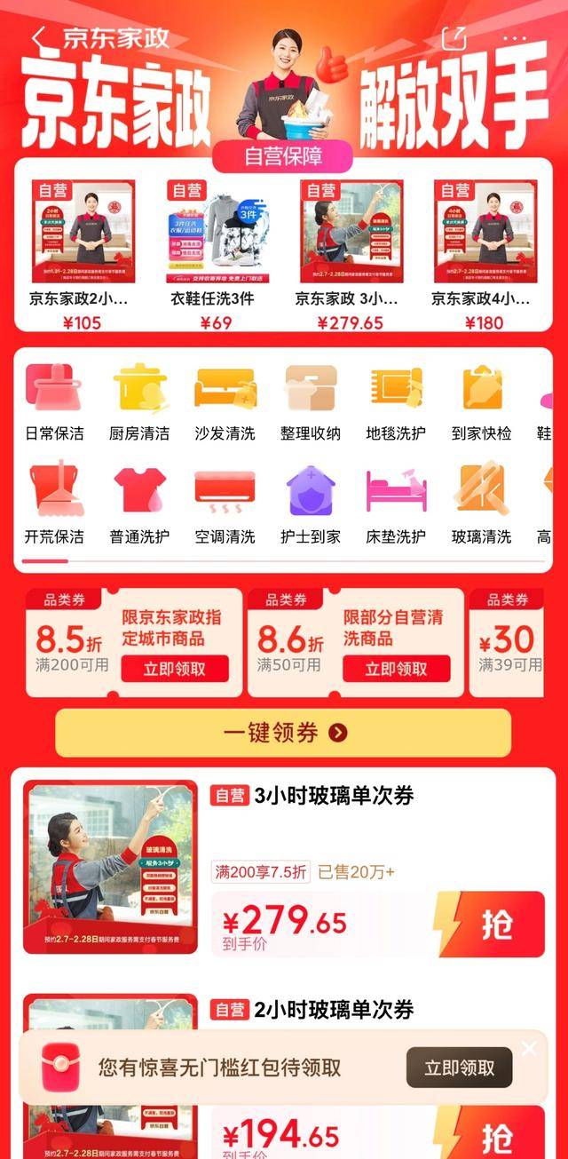 而在京东平台,虽然长辈模式也有字体放大功能,但做得并不彻底。切换模式后,除了首页的“京东买菜”“百亿补贴”等图标看起来有明显放大,下方的推荐商品,并没有看到字体大小有什么明显变化。点击京东买菜、京东家政图标进入二级页面后,这些页面的字体也都变回了原先的小字体。在“适老化选品”方面,记者也并未看到长辈模式做过专门的设计,商品分类里的内容和普通模式基本是一样的。