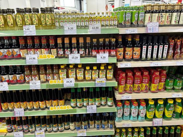 但记者也注意到,超市内的这些老年人商品专架,并不是统一放在一起的,而是根据商品的类别不同,分散在各自的区域。在调料区,让肖女士有些不解的是,相邻的两个货架摆放的调味料种类没有明显区别,甚至都有比较适合老年人食用的“减盐款”,但偏偏一个是老年人商品专架,另一个却不是,它们的价签大小也因此不同。“为什么不能把两个货架的价签都放大呢?”