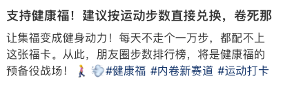 比如通过阿福完成健康打卡任务就能获得福卡,甚至网友提议的拿运动步数换也很好,这种将娱乐仪式与健康陪伴结合的玩法,不光简单也确实对大家有益。
