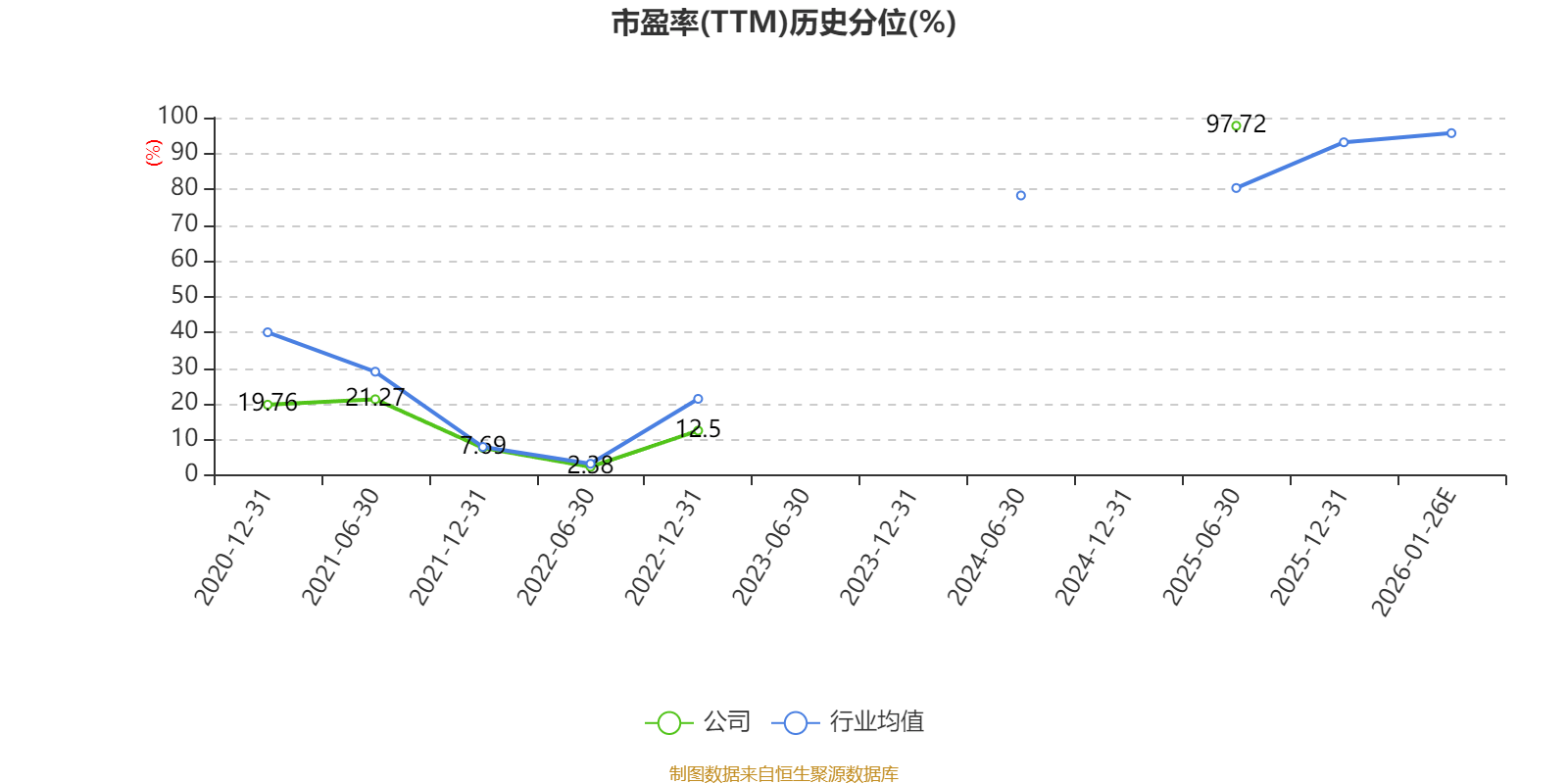 市盈率、市净率为负时,不显示当期分位数,会导致折线图中断。