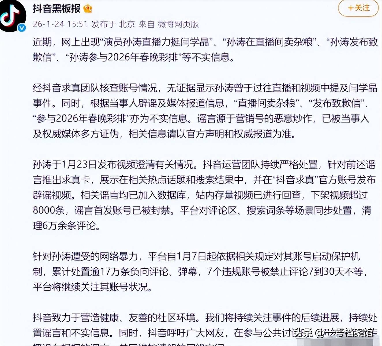网络上有传言称孙涛力挺闫学晶,这一消息让他成为了众矢之的,遭遇了大量谩骂。更荒唐的是,孙涛的妻子也因此受到了牵连。孙涛最终不得不出来回应,他在视频中显得非常憔悴,提到这些网络传言时甚至哽咽落泪,令人不禁心生怜悯。事实证明,这一切的言论不过是虚假的网络谣言而已。