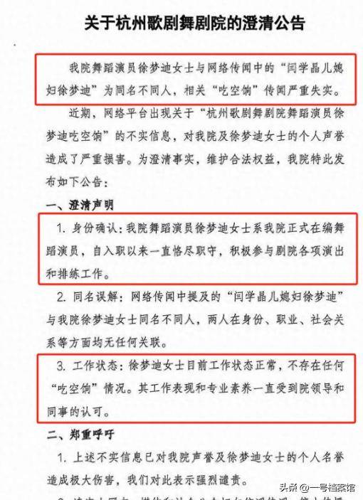 与此同时,哭穷风波爆发后,网友们开始挖掘孙涛儿媳徐梦迪的背景。徐梦迪是某剧院的舞蹈演员,因此也遭遇了吃空饷的传闻。就在网友们纷纷讨论时,剧院方面发布了澄清声明,表示徐梦迪并非该剧院的舞蹈演员,两者只是同名同姓,吃空饷的说法纯属谣言。