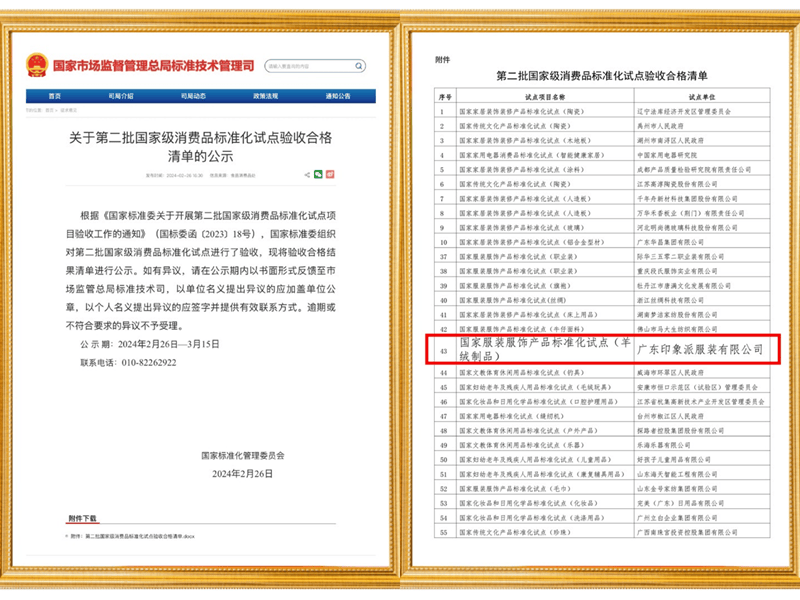 2025年11月9日,印象草原负责推进的“国家级羊绒服饰标准化试点项目”在“世界毛织之都”东莞大朗正式揭牌。