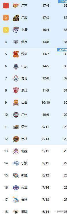 今晚的比赛日,就这样以广东的欢庆和北京的落寞画上了句号。 积分榜的每次刷新,都是过去一轮比赛最直接的写照。 对于球迷而言,这样的剧情充满张力;对于球队而言,则是一次次的警醒和激励。 常规赛的每一场,都关乎排名,也关乎信心。
