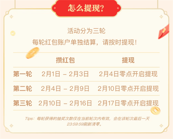 据了解,本次新春活动玩法丰富,涵盖抽奖集红包、祝福语红包、限时红包雨等多种形式。