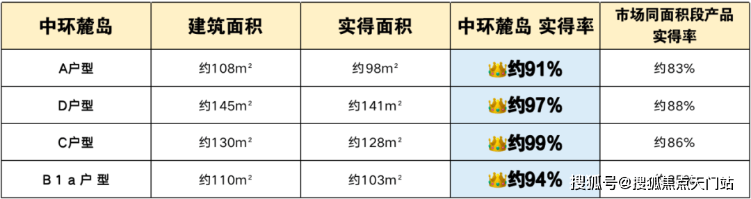 市面上同面积段产品的实得率,一般在80-85%左右;但中环麓岛实得率做到了惊人的90%以上!
