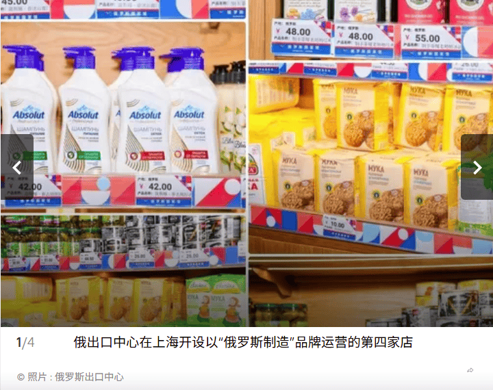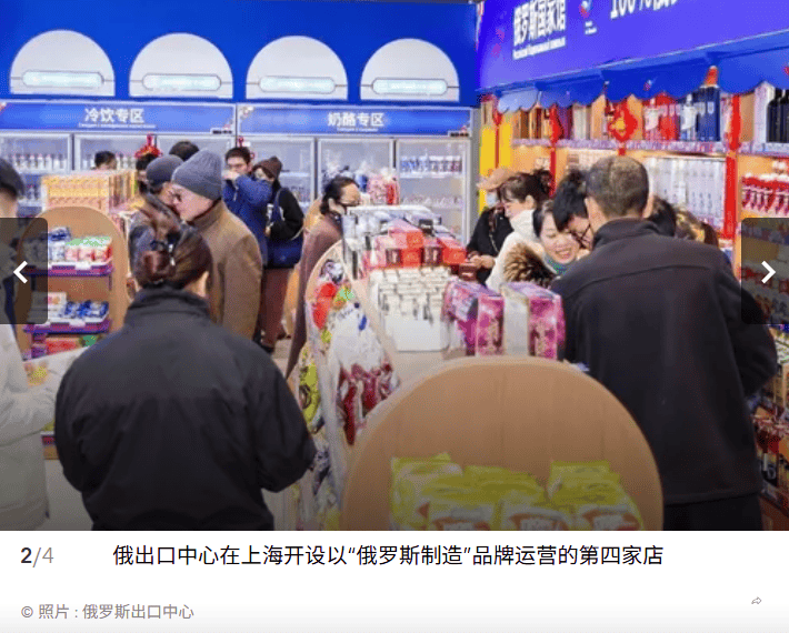 【俄罗斯出口中心(隶属于俄罗斯对外经济银行集团)发布消息称,第四家以“俄罗斯制造”品牌运营的新店已在上海开业。】