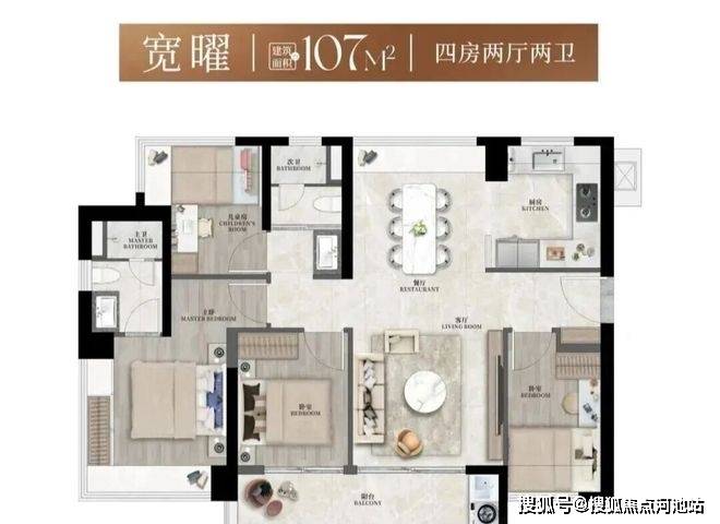 建面约107㎡4房2卫,是高实用4房的典范之作。据说只有40多套房源,属于位置好+数量稀缺的明星户型,喜欢的朋友大概率要拼手速了!