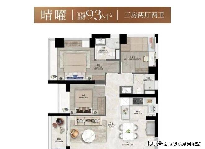建面约93㎡3房2卫,设计了两种户型,在三房的功能尺度下实现大平层般的豪宅享受。