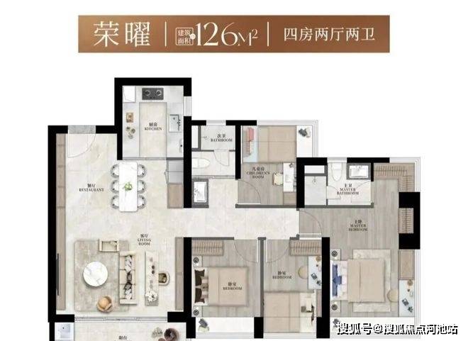 建面约126-130㎡4房2卫,堪称一步到位的改善终极选择,把舒适灵动做到了极致。