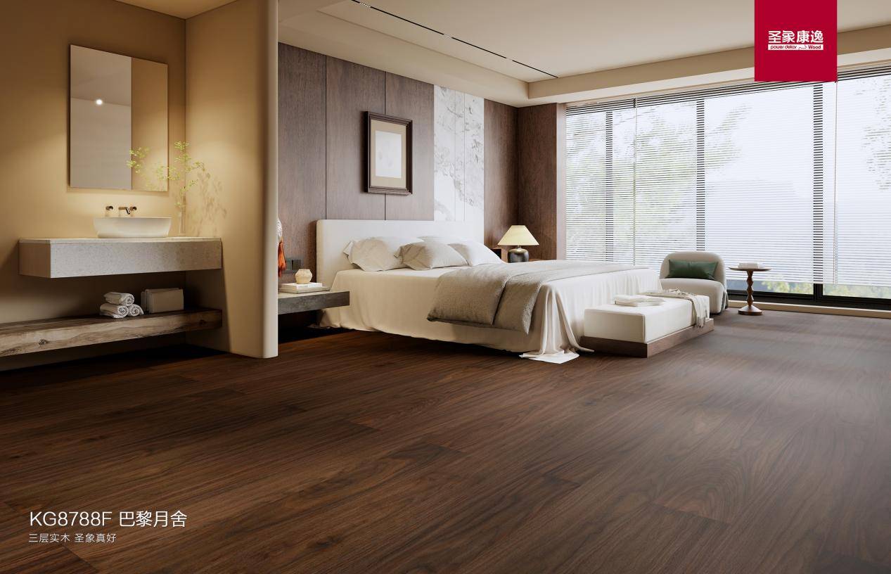 通过“一色多形”等设计巧思,圣象让地板成为空间风格的“定调者”,轻松适配从宋式美学到意式轻奢的多元审美。产品应用从地面延展至楼梯、墙面,提供一体化解决方案,将品质感融入整体居家氛围。
