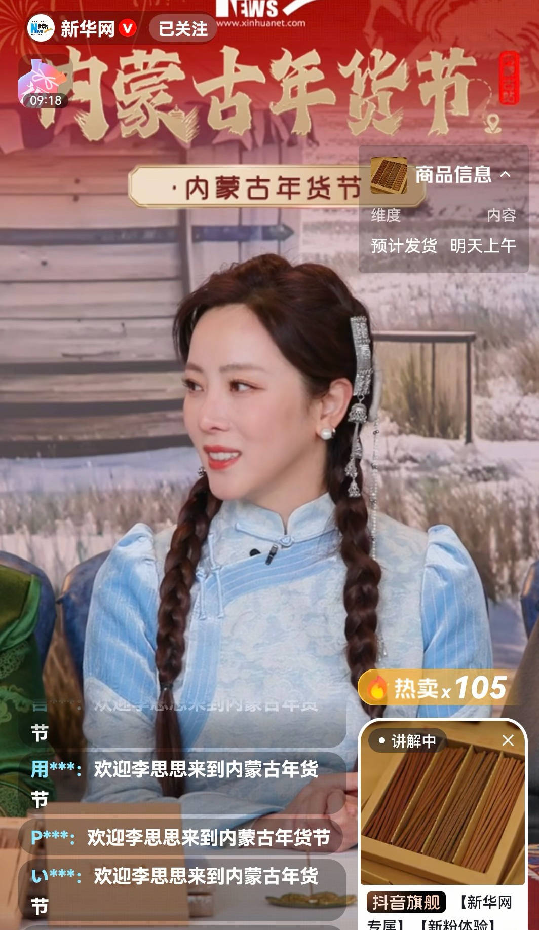1月29日,李思思又有新动作。她参加了新华网“内蒙古寻真溯源之旅”年货节直播。这是个人转型、平台合作、地域推广与文化传播多重因素叠加的结果。