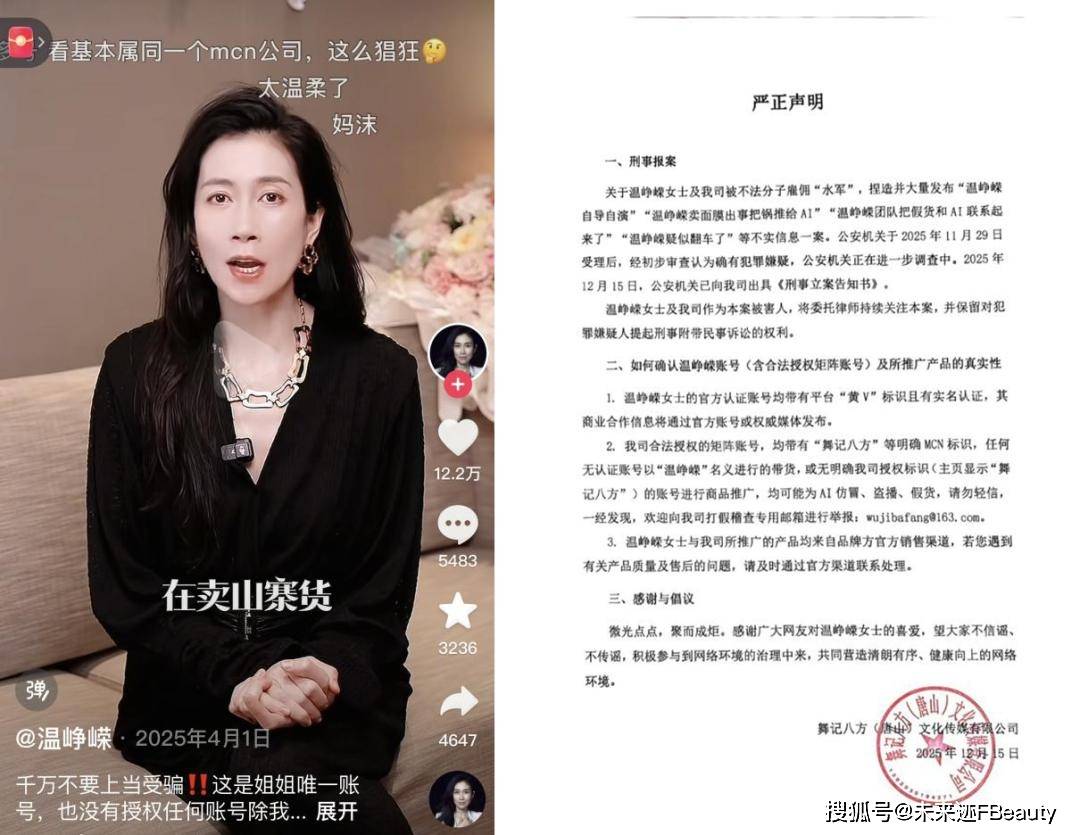 当话术和产品本身的说服力开始乏力,部分营销开始走向“创造信任”的虚假路线。这也是美妆直播行业的第三个乱象:信任载体的全面造假。演员温峥嵘曾一天内举报18个使用其AI换脸形象的直播间,众多明星在不知情下“被代言”,技术的滥用消解了代言的真实性。