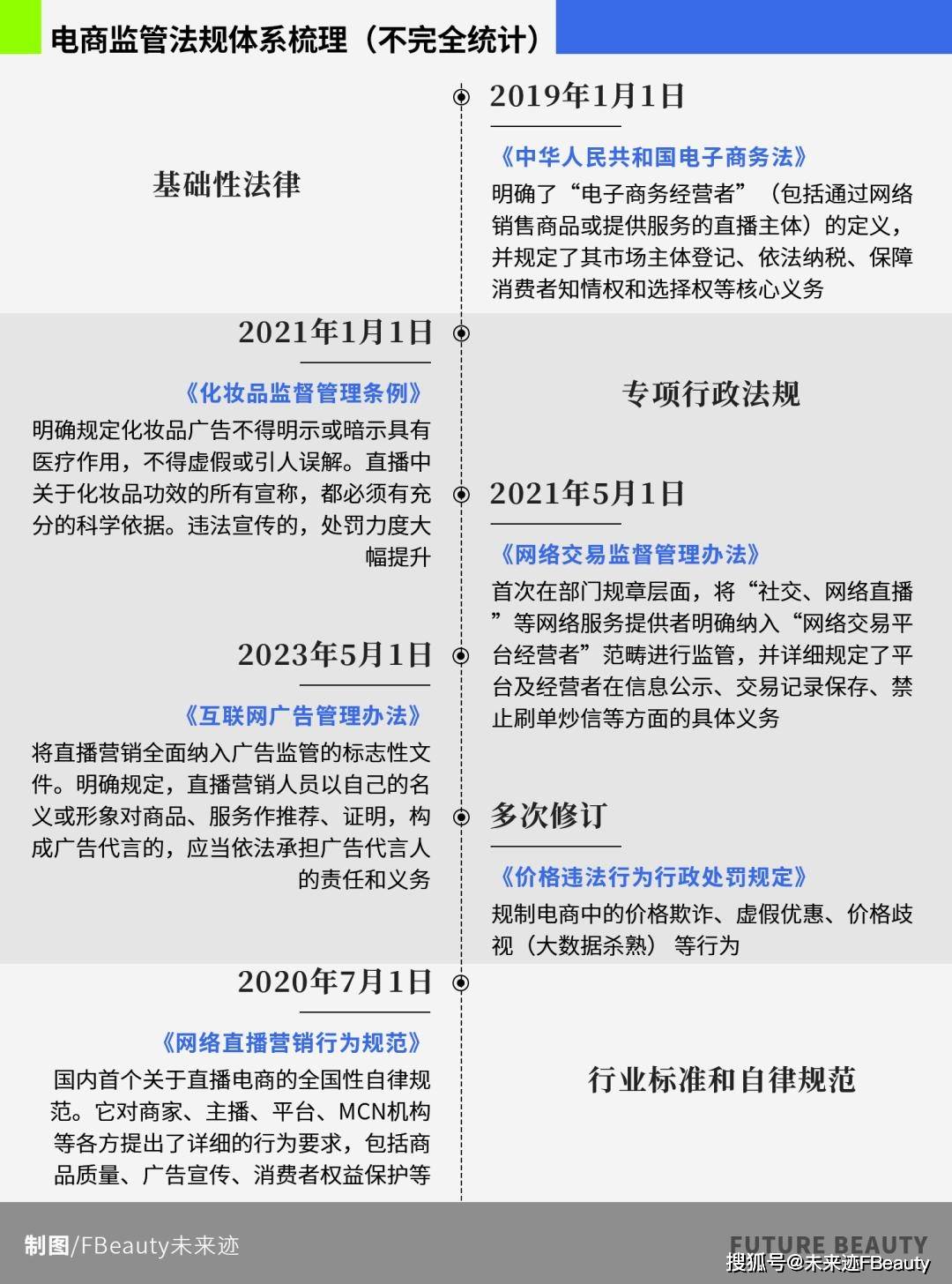 《直播电商办法》也不是凭空产生的,而是建立在既有法律法规基础上的专业化延伸,是对既有法律法规在直播场景下的专业化集成。《FBeauty未来迹》梳理了中国电商监管的法规体系,见下图。