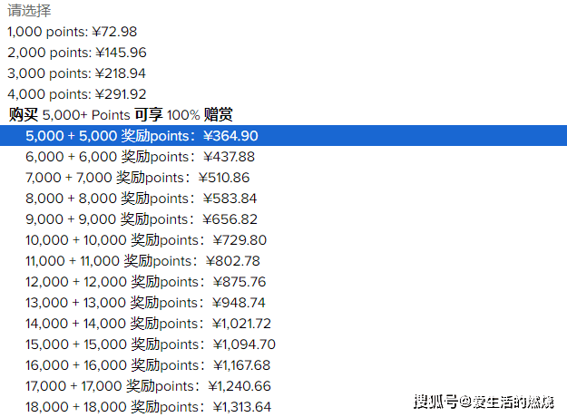 加赠后的购买成本为364.9人民币/万积分,促销期间最多可购买16万积分,算上加赠即可获得32万积分。