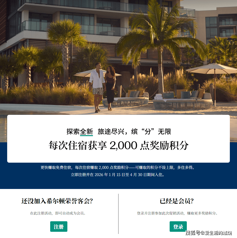 立即注册,并在2026年1月15日至4月30日期间入住,每次住宿赚2000积分,奖励上不封顶。