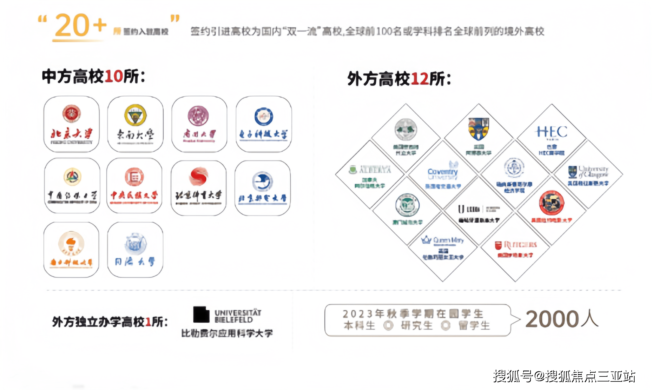 园区规划12.72平方公里,定位为国家级教育创新发展示范区。首创“大共享+小学院”理念,建立“留学海南=留学国外”品牌,目前已签约进驻23所国内外一流高校,未来将成为3万+国际高端人才的培养基地,也是自贸港核心人才孵化引擎。