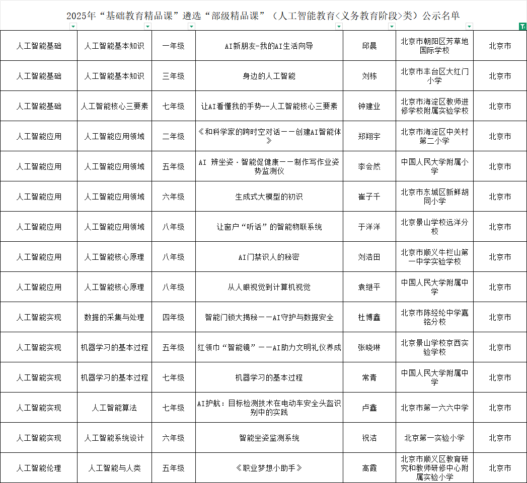 人工智能教育(义务教育阶段)类公示名单(北京地区)