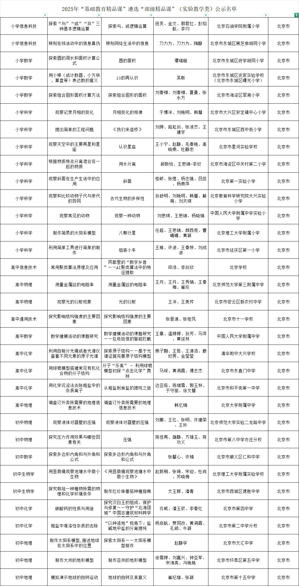 另据统计,北京市中小学此次共有202节课例入选公示名单,具体内容一起来看——